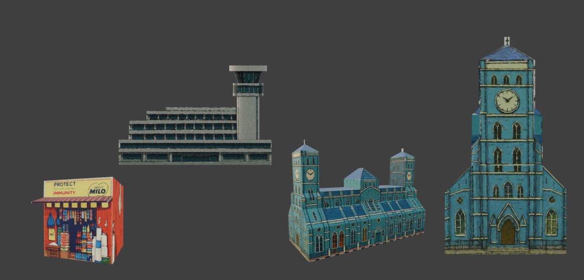 A major part of this project involved reconstructing Lagos in 3D from scratch. We gathered architectural references from Google Maps and street-level photography, collected visual details from local businesses and landmarks, and even sourced real-world textures from places Odi grew up seeing. We also used AI to generate 2D concept art, which was then translated into 3D assets in Blender.
